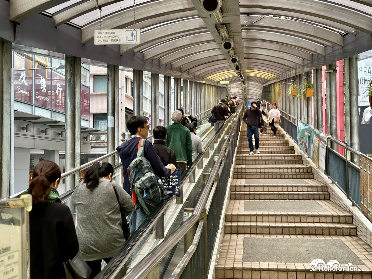 Hong Kong (2)An der Harbour City Mall gibt es einen Fähranleger und man kann für 5 HKD schnell und günstig auf die andere Flussseite fahren. In Fahrtrichtung links ist empfehlenswert für die beste Aussicht. Auf der anderen Flussseite, auf Hongkong Island, angekommen, erlebten wir einen Mix aus Tradition und Moderne. Traditionelle Häuser eingerahmt von Wolkenkratzern, Tempel neben Shopping Malls und Bauarbeiter, die Bambusgerüste aufbauten. Hier gab es viel zu sehen und so ließen wir uns treiben, durch die traditionelle Pottinger Street und nutzten das längste Rolltreppennetz der Welt und merkten hier, dass wir doch in einer Metropole sind, denn einige hatten es ganz schön eilig. 🙂