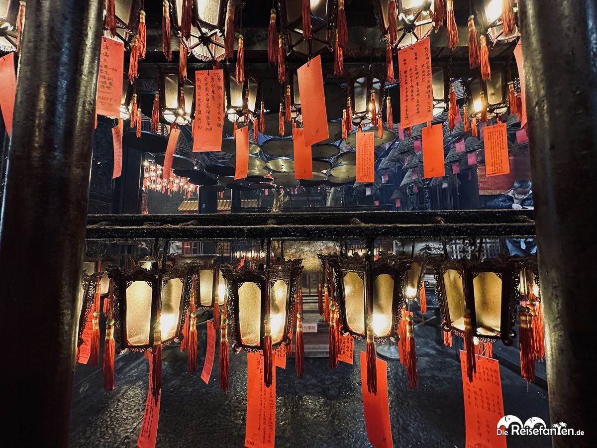 Der Man Mo Tempel ist einer der ältesten und berühmtesten Tempel in ganz Hong Kong. Wir schauten hier nur kurz rein, denn es ist einer reiner Räucherkerzentempel und man kann kaum atmen. Allerdings hat der Tempel fürs Auge einiges zu bieten, so dass sich der Besuch dennoch lohnt.