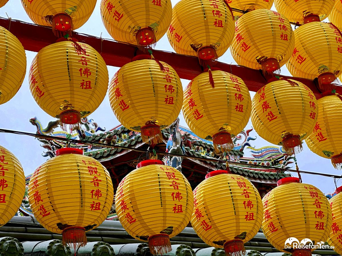 Es war schon ein ordentlicher Weg vom Chiang Kai-Shek Memorial zum Longshan Tempel. Rund 40 Minuten waren wir zu Fuß unterwegs aber wir genossen die vielen Eindrücke Taipehs die sich am Straßenrand ergaben. Der Longshan Tempel ist Taipehs ältester Tempel und als wir zu Besuch waren, war er vom Neujahrsfest noch feierlich geschmückt. Hier war sehr viel los, Einheimische und Touristen mischten sich und es gab für uns einiges zu sehen. Auch hier meinte man es mit Räucherstäbchen wieder sehr gut aber da man zum Großteil im Freien war, war es nicht so schlimm wie in Hong Kong.