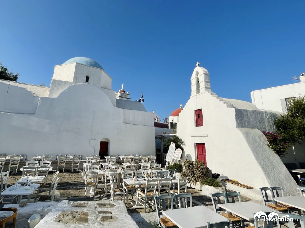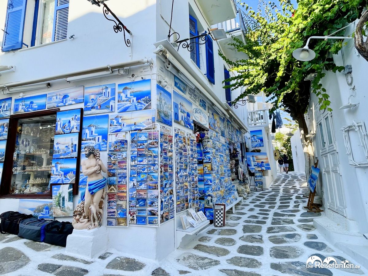 Anschließend ging es weiter durch die verwinkelten Gassen und entlang der schönen weißen Häuser zur Anlegestelle vom SeaBus. Mykonos Stadt ist wirklich sehenswert und bietet allerlei Shopping Optionen in allen Preissegmenten. Hier einen Bummel einzulegen ist daher auch eine Möglichkeit, um einen schönen Landgang zu verbringen. Souvenirs gibt es zudem an jeder Ecke und wer die griechische Küche kosten möchte, der findet ebenfalls unzählige Restaurants.