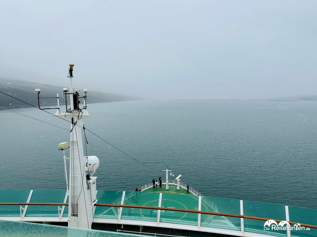 Mehr Glück hatten wir schließlich bei der Ausfahrt, das Wetter war einfach perfekt. Entweder bei der Ein- oder Ausfahrt sollte man an Deck sein – das Panorama lohnt sich!