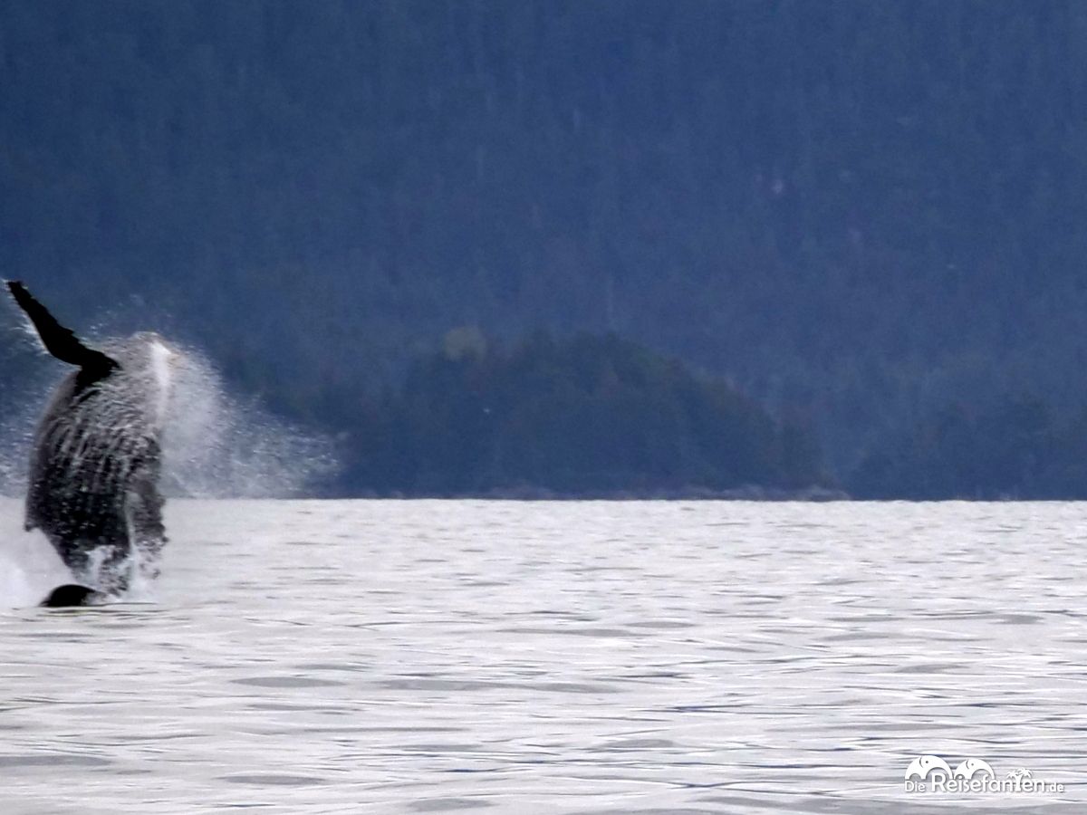 Und danach ging es dann richtig los – der Captain hatte von einem befreundeten Bootsführer gehört, dass Buckelwale gesichtet wurden. Dort fuhren wir dann auch sofort hin und erhaschten wirklich tolle Bilder von ihnen. Später dann ging es noch an eine weitere Stelle, wo einer der Buckelwale spielte und mit den Flossen auf das Wasser schlug. Die Besonderheit: er sprang auch ab und zu mal aus dem Wasser und drehte sich dabei. Leider zwar nicht 100-prozentig auf Fotos festgehalten, aber ein paar Aufnahmen haben wir doch und wollen diese Euch natürlich nicht vorenthalten.