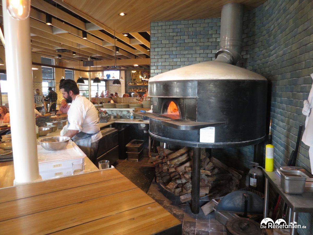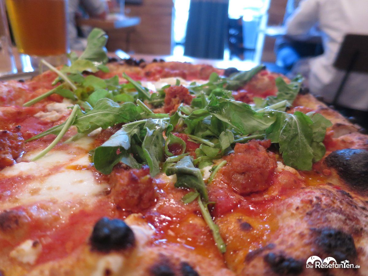 Nach einem langen und ereignisreichen Tag in Tampa legten wir am Pool des Aloft Hotels noch ein wenig die Beine hoch, bevor es dann zum Abendessen in eines der angesagtesten Restaurants im SoHo Bezirk Tampas ging. In der 718 S Howard Avenue gelegen, bietet das italienische Restaurant Essen auf sehr hohem Niveau. Ob Pizza, Salate, Pasta oder Steaks – hier wird jedes Feinschmeckerherz fündig. Das Ambiente des Ava mit seiner offenen Küche hat uns sehr gefallen – auch der schöne Ofen im Gastraum sorgte nicht nur für ein schönes Interieur sondern erfüllte den Raum auch mit leckerem Pizzaduft. Ein Glück brauchten wir auf unser Essen nicht lange warten, ein kühles Samuel Adams (jedem USA-Urlauber sei dieses Bier mal empfohlen!) überbrückte bis dahin die kurze Wartezeit.