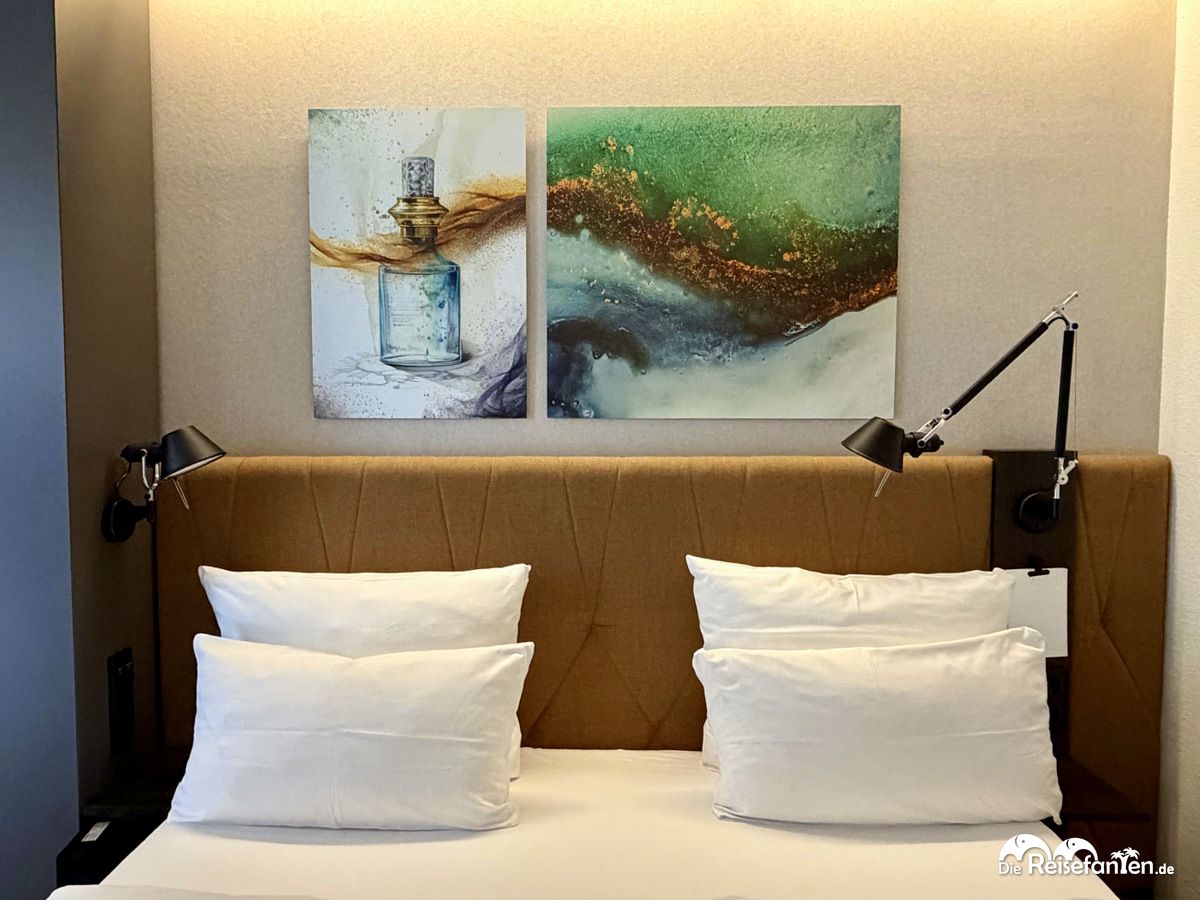 Zugegebenermaßen war das Doppelzimmer recht klein, man musste sich etwas arrangieren. Mit großen Koffern wären wir an unsere Grenzen gekommen aber wir hatten zum Glück kein großes Gepäck dabei. Das Bett war sehr bequem und es gab zwei unterschiedliche Kissen und eine Bettdecke, die sehr kuschelig aber nicht zu warm war. Auch war das Bett in einer ordentlichen Länge, so dass man als großer Mensch ausreichend Platz hatte. Das Badezimmer war ebenfalls recht klein und hatte wenig Ablagefläche. Seife und Shampoo wurden angeboten, ansonsten gab es keine weiteren Pflegeprodukte.