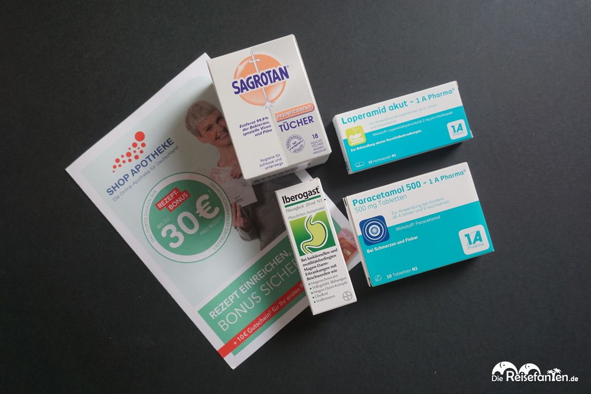 Wir haben es getan – die alte Medikamentenkiste wurde mal durchforstet und was fanden sich da für Schätze: schon mal benutztes Nasenspray, Magentropfen aus dem Jahre 2015 und angebrochene Hustensaft-Reste. Kurzum, Zeit, für einen frischen Reset unserer Reiseapotheke – natürlich online unterstützt.