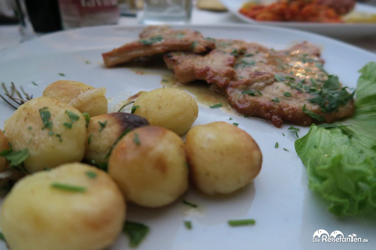Nachdem wir uns die Restaurants im Ort von Limone genauer angesehen haben, entschieden wir uns schließlich für das Restaurant Jacky Bar. Zwar gab es hier auch einen Auszug aus einer deutschen Speisekarte, italienische Speisen fanden wir jedoch auch. Letztendlich entschieden wir uns für die Nudeln Tris Casa, die aus Ravioli, Lasagne und Penne bestanden, sowie für die Scaloppine. Dazu gab es einen Wein des Hauses, der geschmacklich ebenfalls zu empfehlen ist.
