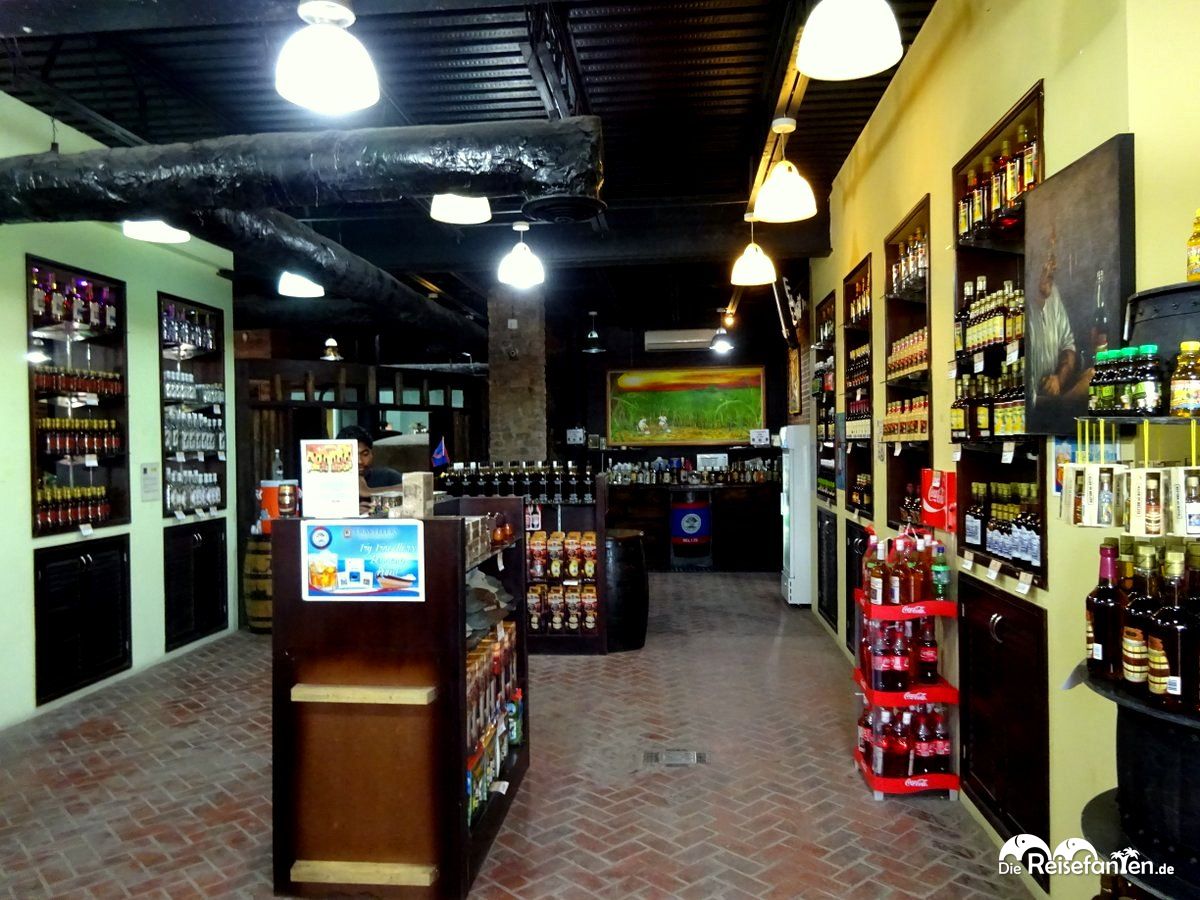 Die Rum Fabrik von Travellers Liquors liegt direkt in Belize City. Vor der Fabrik selbst gibt es ein kleines Museum, welches aber primär ein Shop ist. Für uns genau richtig, denn allzu viel Zeit hatten wir dann doch nicht mehr. Wir waren daher froh, dass wir noch ein paar Eindrücke mitnehmen und uns über das breite Angebot informieren konnten. Viele verschiedene Rumsorten in unterschiedlichen Abfüllungen hat Travellers Liquors im Angebot und die Angestellten standen uns mit Rat zur Verfügung. Das war auch nötig, denn bei dem breiten Angebot verlor man schnell den Überblick.