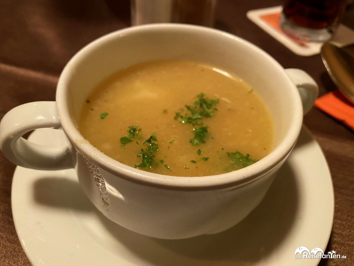 Preislich lagen die Hauptgerichte inkl. Suppe und Salat bei unter 15 EUR. Wir waren mehr als satt und haben qualitativ gut gegessen. Die Nachfrage nach einer Nachspeise mussten wir aber ablehnen – es hätte eindeutig nichts mehr hinein gepasst.