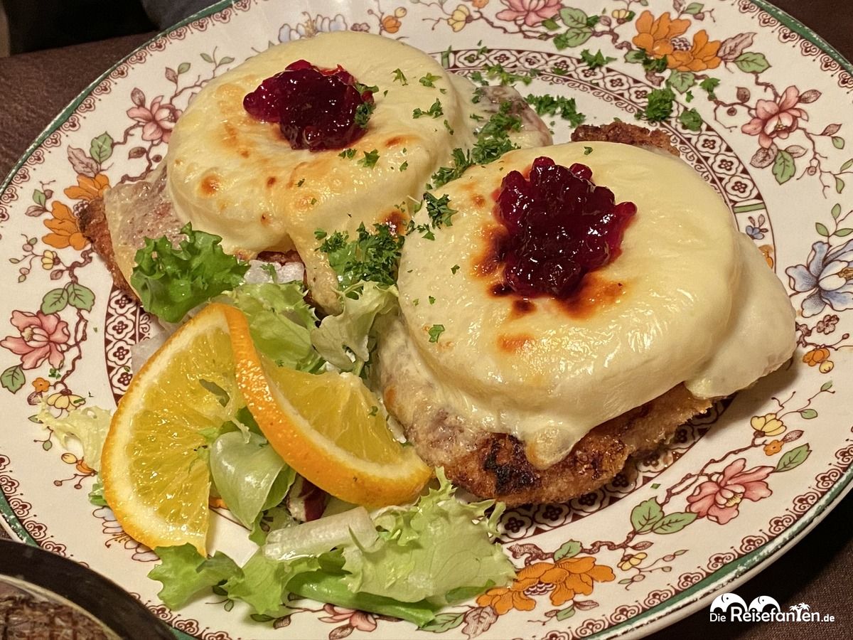 Wir können die Schnitzelgerichte auf der Karte nur empfehlen, die wirklich super lecker sind. Am Salatbuffet kann man sich zunächst seinen eigenen Salat zum Essen zusammen stellen, vorab gibt es aber zunächst noch eine Suppe. Ich vergesse jedes Mal wieder, dass es noch die Suppe gibt, denn so kommt wirklich ein üppiges Mal zustande. Als Hauptspeise hatten wir ein Schnitzel Hawaii mit Ananas und Käse überbacken und ein Putenschnitzel mit Sauce Hollandaise. Ihr seht es den Bildern hoffentlich an, wie lecker die Gerichte waren. Ich bekomme beim Schreiben des Artikels gerade Appetit. 🙂