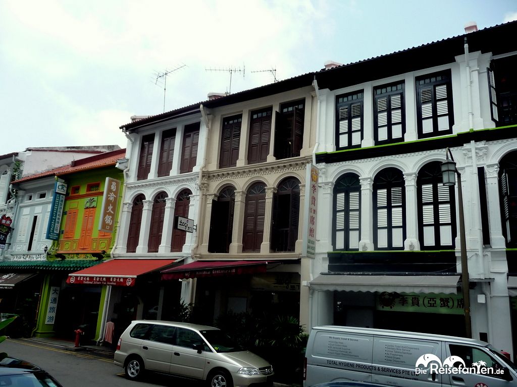 Im Anschluss ging es weiter Richtung Chinatown und somit in das ursprüngliche Singapur. Hier erwartete uns ein richtiger Kontrast zu den Wolkenkratzern, mit niedrig gebauten Häusern mit bunten Fassaden. Die Hauptstraße in Chinatown ist die Pagoda Street. In der Pagoda Street reihen sich viele kleine Verkaufsstände aneinander. Frisches Obst wird hier ebenfalls angeboten, Garküchen findet man auf der Straße jedoch nicht. Die mobilen Küchen der Street Hawker wurden vor langer Zeit von den Straßen Singapurs verbannt und in Hawker-Centern zusammengefasst. Die Auswahl überfordert einen Europäer jedoch gnadenlos. Vielleicht war das auch der Grund, warum wir kaum weitere westlichen Touristen gesehen haben?! Dabei lohnt es sich wirklich! Wir haben uns im Hawker Center in Chinatown umgesehen und dort sehr günstig und lecker gegessen.