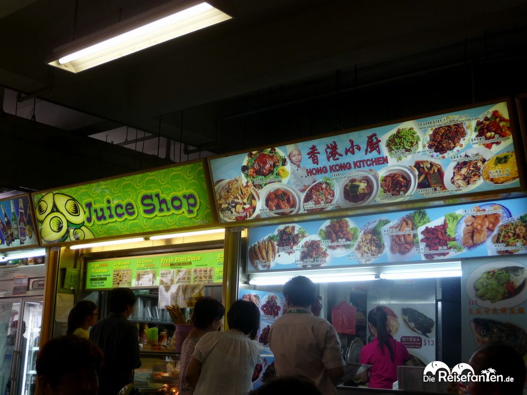 Im Anschluss ging es weiter Richtung Chinatown und somit in das ursprüngliche Singapur. Hier erwartete uns ein richtiger Kontrast zu den Wolkenkratzern, mit niedrig gebauten Häusern mit bunten Fassaden. Die Hauptstraße in Chinatown ist die Pagoda Street. In der Pagoda Street reihen sich viele kleine Verkaufsstände aneinander. Frisches Obst wird hier ebenfalls angeboten, Garküchen findet man auf der Straße jedoch nicht. Die mobilen Küchen der Street Hawker wurden vor langer Zeit von den Straßen Singapurs verbannt und in Hawker-Centern zusammengefasst. Die Auswahl überfordert einen Europäer jedoch gnadenlos. Vielleicht war das auch der Grund, warum wir kaum weitere westlichen Touristen gesehen haben?! Dabei lohnt es sich wirklich! Wir haben uns im Hawker Center in Chinatown umgesehen und dort sehr günstig und lecker gegessen.