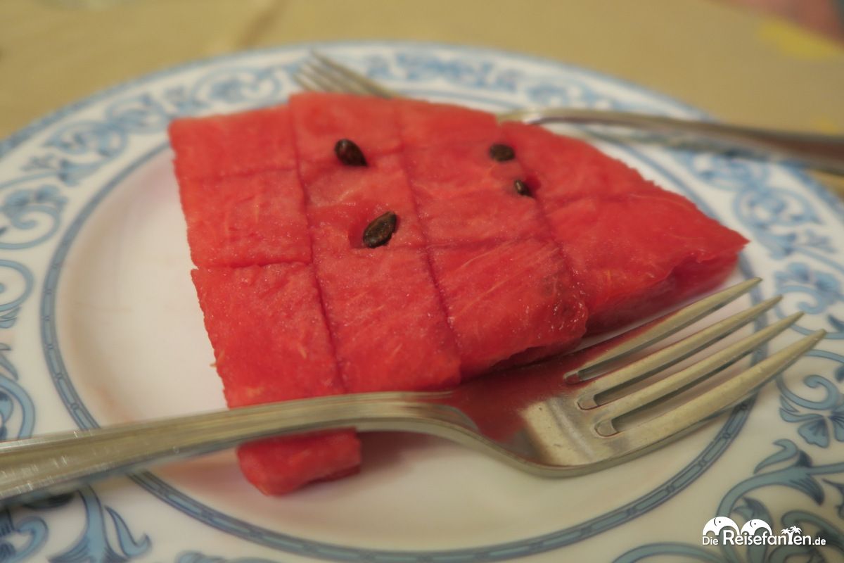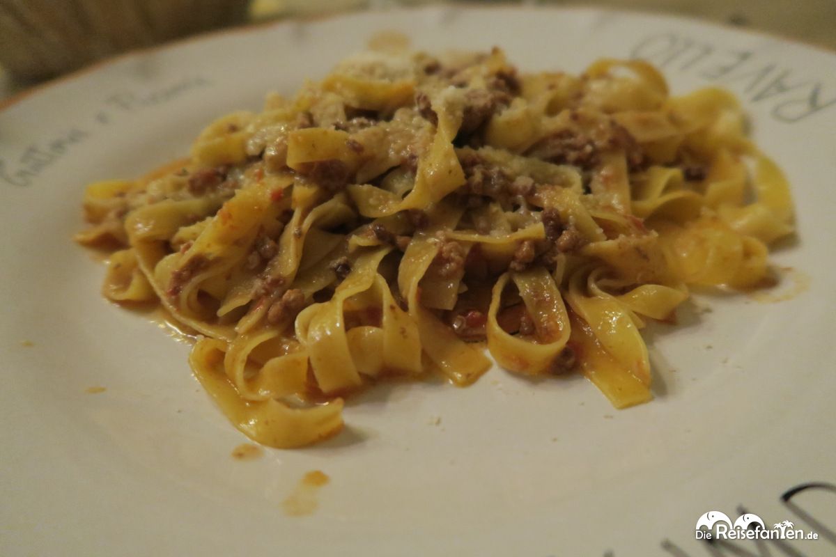Wir entschieden uns für Nudeln mit Ragut (nicht mit unserer Bolognese zu verwechseln) und Cannelloni. Beide Gerichte waren unglaublich lecker, so dass wir unsere Teller bis auf den letzten Happen leer gegessen haben. Prompt kam noch ein kleiner Teller mit einem Nachschlag hinterher – sofern ein Gast nicht satt geworden ist, gibt es halt noch eine Portion. Aber damit nicht genug, zum Nachtisch folgte prompt ein Stück Melone auf Kosten des Hauses. Alles in allem nicht nur lecker, sondern auch ein großartiger Service.