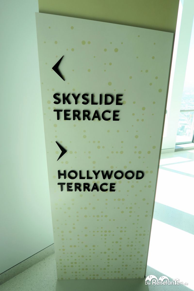Eine Besonderheit dieser Attraktion ist eine Glasrutsche, die vom 70. zum 69. Stockwerk an der Außenseite des Gebäudes entlangführt. Das Vergnügen ist zwar nur sehr kurz – das Rutschen dauert nur ca. 4 Sekunden – aber es sorgt durchaus für eine gesunde Portion Nervenkitzel. Für jeden Rutschenden sind 8 USD zusätzlich fällig, um dieses Abenteuer zu erleben.