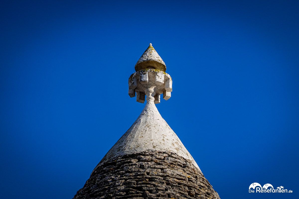 Die Trulli entstanden im 14. und 15. Jahrhundert als clevere Lösung für arme Bauern, die hohen Steuern auf feste Bauten (und somit als abgeschlossen geltende Gebäude) entgehen wollten. Sie errichteten diese temporären Trockenmauerwerke aus lokalem Kalkstein, die bei Inspektionen einfach abgetragen oder schnell eingerissen werden konnten. Die ikonischen Dächer, oft gekrönt von Pinnacoli und Symbolen wie Sternen oder heidnischen Motiven, sorgen für Stabilität, Regenablauf und natürliche Isolation. Und eben als eine Art Zentralstein bzw. Deckel – nimmt man ihn weg, ist der Abriss des Daches ein Kinderspiel. Ursprünglich dienten die Trulli als Lager, Ställe oder einfache Wohnhäuser. Heute sind viele renoviert und werden als Läden oder Unterkünfte genutzt.