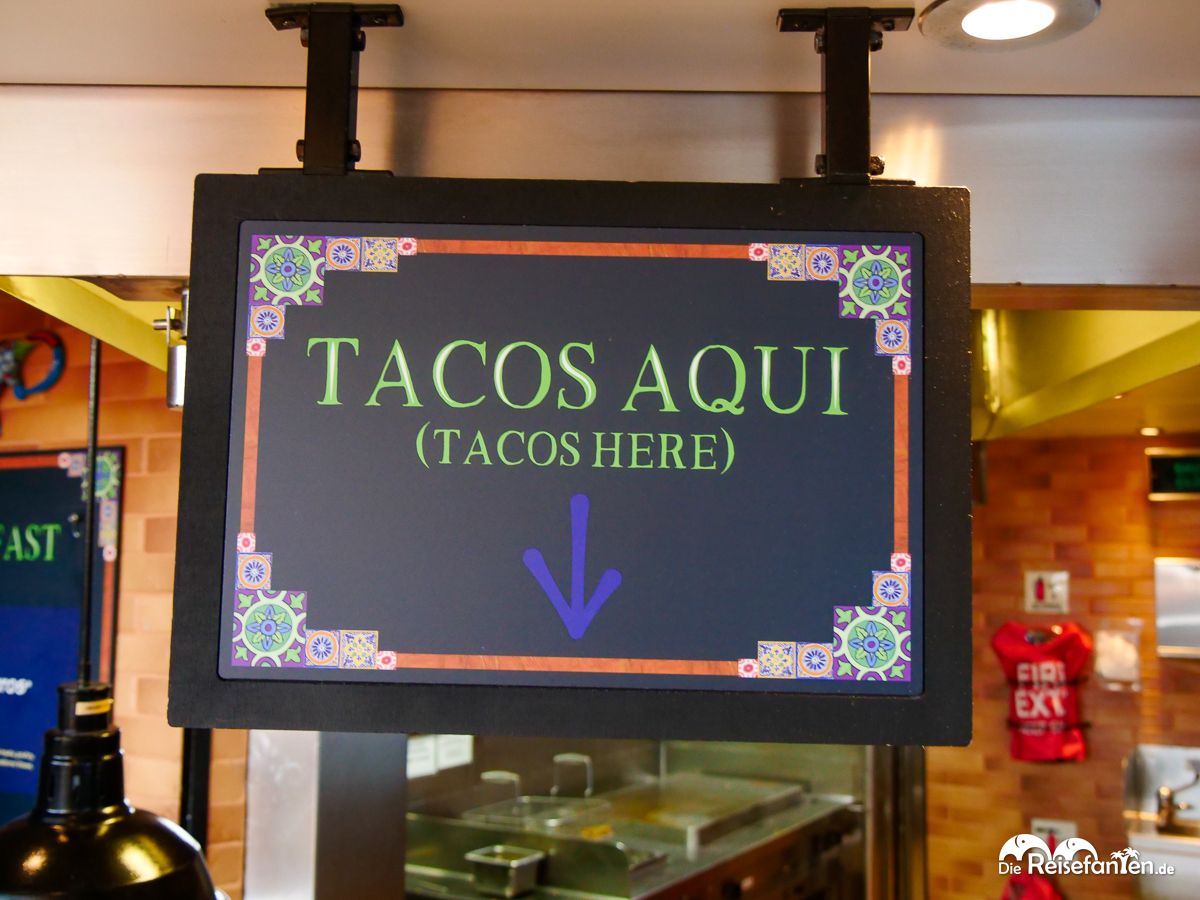Natürlich darf das kulinarische Erlebnis an Bord nicht fehlen. Unsere erste, kleine Station: die Taco Bar. Mit einem freundlichen „Tacos Aqui“ wurden wir empfangen und ließen uns die ersten mexikanischen Köstlichkeiten schmecken. Aber auch der obligatorische Burger bei Guy’s Burger Joint, den wir aßen, war wie immer ein echtes Highlight. Saftig, perfekt zubereitet und mit einer ordentlichen Portion Käse und köstlichen Pommes – ein Genuss, den man sich nicht entgehen lassen sollte. Diesen Tipp haben wir auch die noch folgenden Tage übrigens beherzigt. 😉