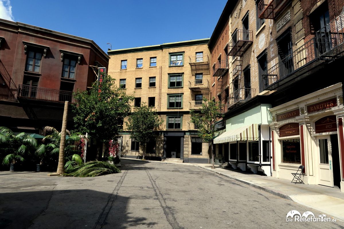Die Häuser am Set werden nur als Fassaden genutzt innen sind die Häuser leerWir besuchten ein typisches Außenfilmset, das eine amerikanische Straße darstellte. Hier werden unter anderem Einspielungen für Filme und Serien gedreht, ein Innendreh findet hier nicht statt. Das wäre auch nicht möglich, denn diese Häuser sind wirklich nur Fassade und von innen nicht ausgebaut. Die Mitarbeiter von Warner Bros. können diese Straße in die unterschiedlichsten Umgebungen verwandeln: je nach Bühnenbild ergibt sich ein futuristisches Los Angeles  (wie z.B. Blade Runner) oder eine klassische Straßenszene aus Pretty Little Liars.