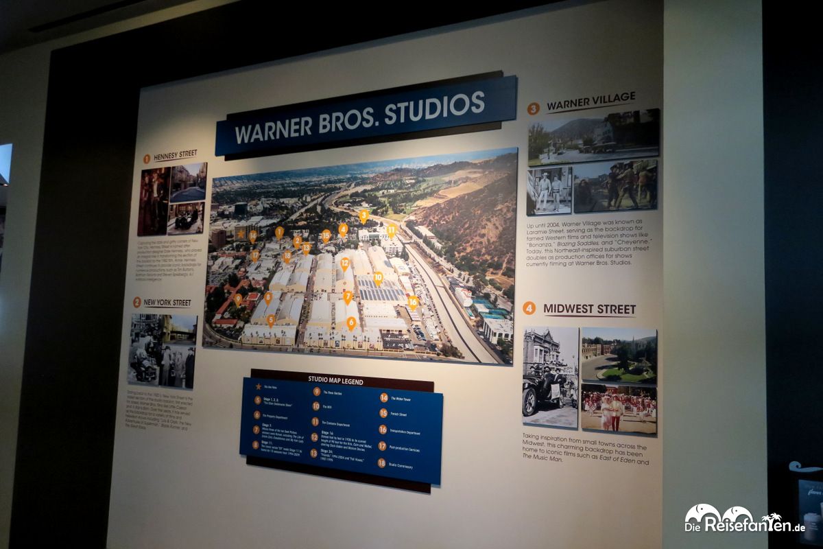 Während der Warner Bros. Studios Tour bewegten wir uns mit einem Elektrofahrzeug fortWarner Bros. befindet sich seit den 1920er Jahren in Burbank, in der Metropolregion Los Angeles. Seit dieser Zeit ist das Areal immer weiter angewachsen und kann heute im Rahmen einer Studio Tour besichtigt werden. Wir waren mit einer zwölfköpfigen Gruppe unterwegs, die von einem sehr freundlichen und vor allem hoch motivierten Guide begleitet wurde. Unser Guide vermittelte uns viel über das Unternehmen Warner Bros., den Standort aber auch über die unzähligen Produktionen, die es von Warner Bros. gab oder gibt. Die Fortbewegung während dieser rund dreistündigen Tour erfolgte mit einem Elektrofahrzeug – die Strecken wären zu Fuß einfach zu weit gewesen.