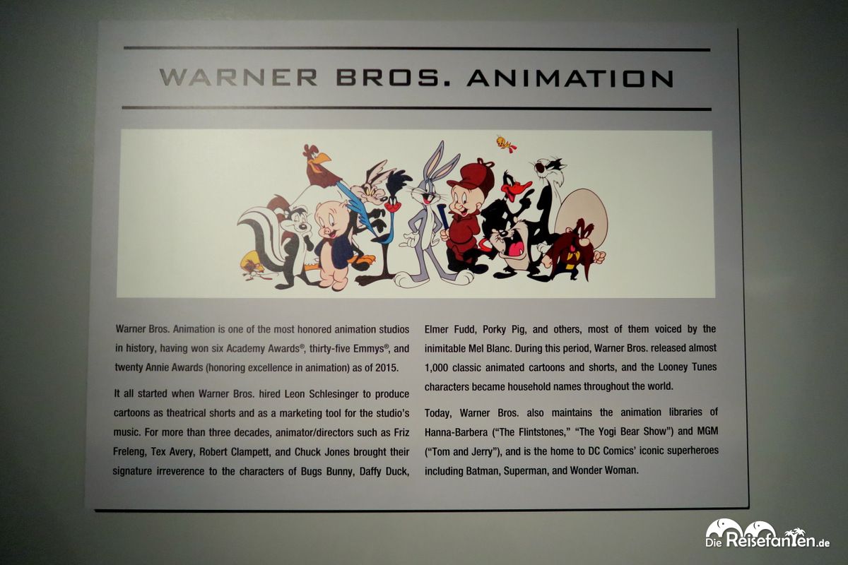 Aber auch Animationen gehören zu Warner Bros. und so habe ich mich auch sehr über den Animationsbereich gefreut. Am Eingang empfingen uns schon Bugs Bunny und Duffy Duck, im Bereich der Animationen wurde das Repertoire noch entsprechend ergänzt. Die Loony Tunes, Familie Feuerstein aber auch Scooby Doo, alle waren hier vertreten. Unser Guide hatte uns mittlerweile abgesetzt und uns für die letzte Station so viel Zeit wie nötig gegeben.