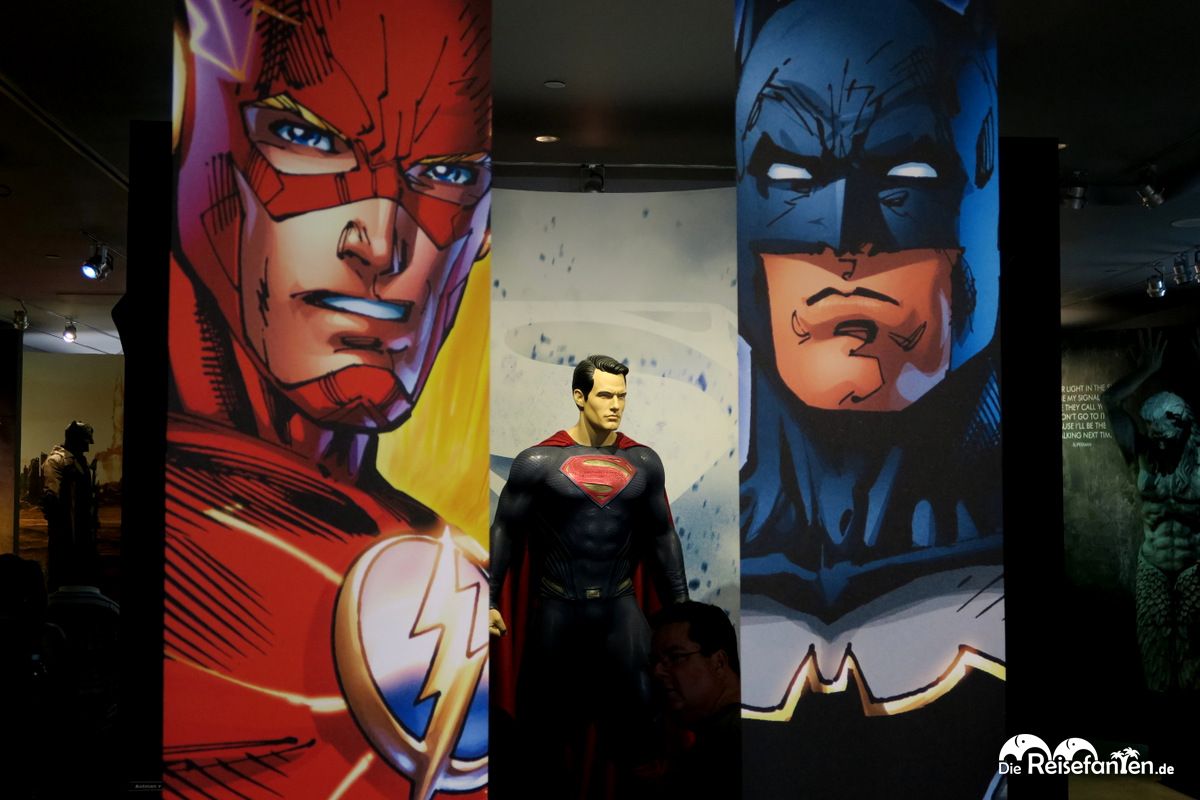 In der Batman Sonderausstellung gab es allerlei zu Batman zu sehenGleich zwei Sonderausstellungen gab es während der Warner Bros. Studios Tour für uns zu sehen: Superhelden und Batman. Dafür waren allerlei Requisiten ausgestellt und insbesondere die Herzen der männlichen Besucher schlugen höher. Unser Guide gab uns ausreichend Zeit zum Umsehen und die vielen Informationstafeln informierten uns über die vielen Ausstellungsstücke.
